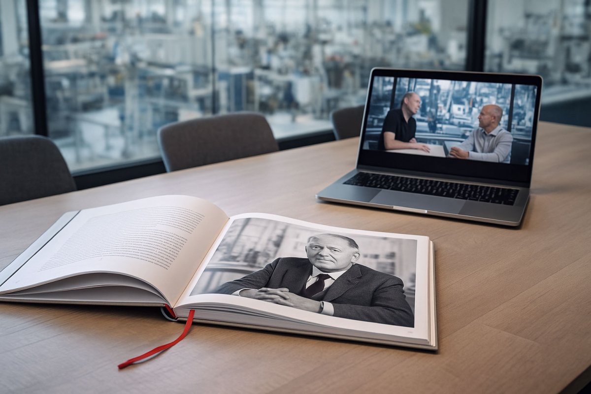 Wir führen dafür ausführliche Interviews, auf Wunsch auch als Videogespräch, sichten vorhandenes Bild- und Textmaterial und ergänzen es durch neue Aufnahmen. Aus all dem entsteht ein authentisches Unternehmensporträt – zum Beispiel als filmische Dokumentation im Stil eines Lebenslinien-Portraits oder als hochwertiger Bildband im Eigenverlag.